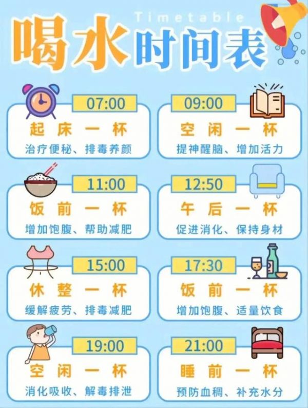 3、把饮水量提高到2500ml~3000ml,不要等到口渴了才去喝水,并定时喝水。