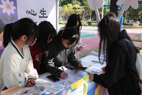 活动现场,工作人员有条不紊地布置现场,向同学们讲解健康知识,引导同学们形成健康的生活方式。经过的同学们被宣传摊位吸引,不约而同驻足观望。