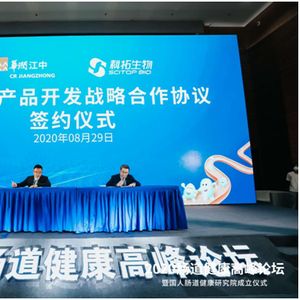 此次2020肠道健康高峰论坛上,科拓生物与江中药业均为国内各自行业领域内的代表企业,两家公司建立战略结盟,体现了双方联手布局肠道健康产业、抢抓行业发展机遇的战略意图。江中药业作为大型医药上市公司,致力于国人胃肠健康 50年,多年引领中国OTC咽喉、消化、肠道调理市场的发展。相信通过合作关系的建立,双方将加快资源共享和优势互补,助力和赋能我国肠道健康研究和肠道健康产业的快速发展。