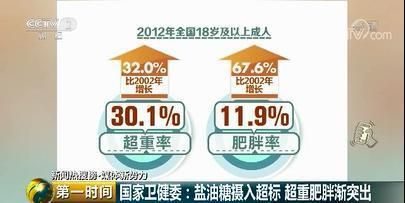 由此带来的超重肥胖问题也日渐突出,2012年全国18岁及以上成人超重率为30.1%,肥胖率为11.9%,与2002年相比分别增长了32.0%和67.6%;6至17岁儿童青少年超重率和肥胖率也分别增加了1倍和2倍。