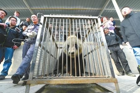 上午9时许,饲养员趁着“蜀兰”早膳的时间对她进行出行前的身体检查。体重95.6公斤,体温36.2度,血压正常。