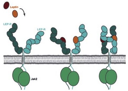 瘦素受体:瘦素受体基因的多态性可能不是形成人类肥胖的基础,而发现瘦素受体基因表达下调可能是瘦素抵抗原因之一。通过实验证明,使下丘脑ob-Rb表达水平上调,可激发其后的信号转导而发挥瘦素的减重、降脂作用。瘦素抵抗是否与瘦素受体水平下调有关,还有待深入研究。