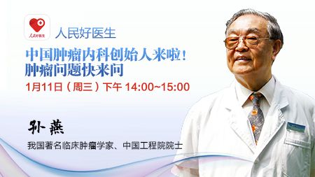 1月11日(周三)14:00-15:00,由人民日报社人民网、健康时报联手打造的“人民好医生”客户端将邀请我国著名临床肿瘤学家、中国工程院院士孙燕进行视频、图文直播,在线解答关于肿瘤的预防、放化疗治疗等相关问题,期待您的提问和参与。