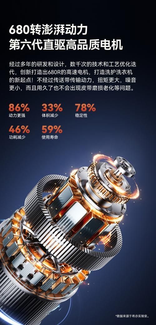 拥有着低噪音的运作体验,主要得益了洗衣机内置了第六代高品质的直驱变频电机,脱水转速最高可达680转,无需传送带传输动力,因此动力更大而稳定,噪音也约低,即使在安静的夜晚也能照常使用。配合上了4重的震稳固系统,让洗衣机运作更加的稳固,不会出现偏移。