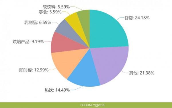 Innova Market Insights 的市场数据显示,2016年到2017年全球上市的具有体重管理宣称的食品饮料中,谷物类产品占最大的份额,其次是热饮、即食餐、烘焙、乳品、零食和软饮料。 谷物类食品具有高蛋白、低脂肪、高纤维等特点,一直是体重管理类食品比较流行的主要形式。