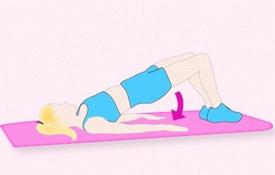 2.慢慢吸气、吐气把臀部夹紧往上抬;