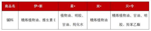那么,维生素AD补充剂的辅料中会不会含有性激素呢?笔者在某大型电商平台上搜索了销量前四名的商品,见表2。其中,最有嫌疑的就是维生素E了,因为它具有一个极具诱惑的别名“生育酚”,但是维生素E也属于脂溶性维生素而非性激素,其作为药用辅料添加量极低,有人专门测定了伊*新中维生素E的含量平均为0.494mg/g[10],维生素E的适宜摄入量最低的小婴儿都达到了3mg[11],远远大于辅料的添加量,更别说目前关于维生素E与性早熟之间并没有明确的因果关系。