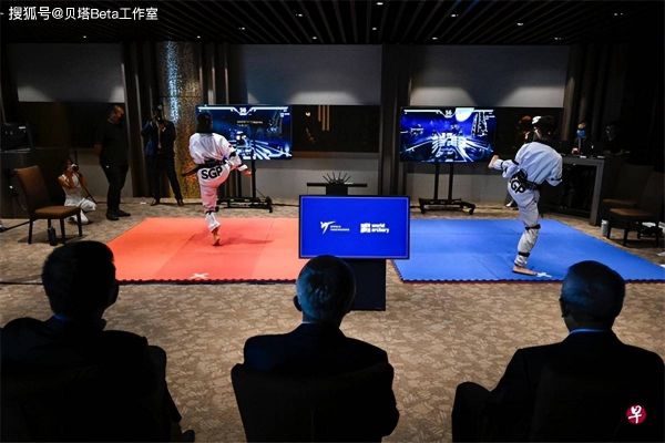 而自行车、帆船、跆拳道和网球等这些都将以虚拟的形式比赛。因为早在22年初,国际奥委会访问新加坡期间,就观赏了电竞跆拳道运动,也正是因此促成了首届奥林匹克电子竞技系列赛在新加坡举办的契机。所以这些运动项目的电竞赛事,应该都和下图跆拳道所示的一样,线上虚拟进行。