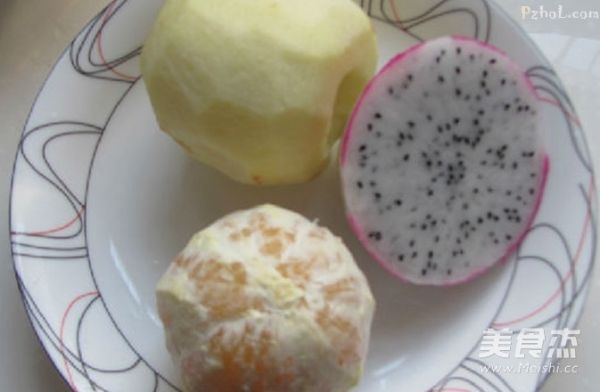 主要材料:橙子1个、苹果1个、火龙果半个、沙拉酱适量
