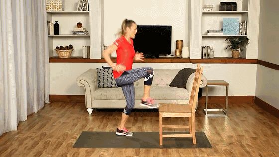 找到一张椅子,椅子的高度略微高于小腿位置,正面面对椅子站立,并且中间留出一些距离。抬头挺胸地站立着,双腿站直,膝盖可以微微的弯曲,手臂置于身体两侧弯曲着,跟随跳跃进行甩动。眼睛看向椅面,跳跃起来,将一条腿抬高,用脚尖轻触椅面,触碰之后迅速收回,向上抬起另一条腿,两腿快速连贯的交替进行。