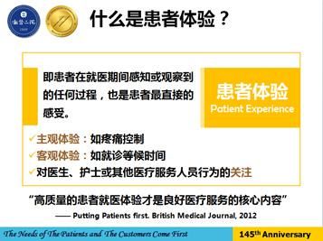 随着“患者至上”“以患者为中心”这样的理念被医者接受,由此衍生的“患者体验”一词正日趋火热。紧随而至的问题是,何谓患者体验?医院怎样提升患者体验?浙江大学医学院附属第二医院院长王建安在一次演讲时,其中4张PPT正好回应这两个问题。