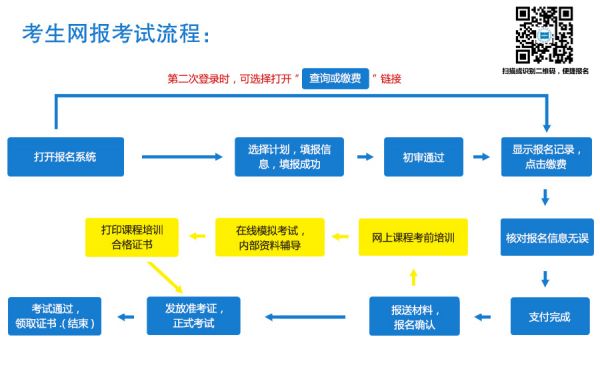 登录报名平台(http://bm.hnzzgpx.com/)→填报信息→报名资格待审→审核通过→缴费及现场确认→提交材料→领取准考证→正常考