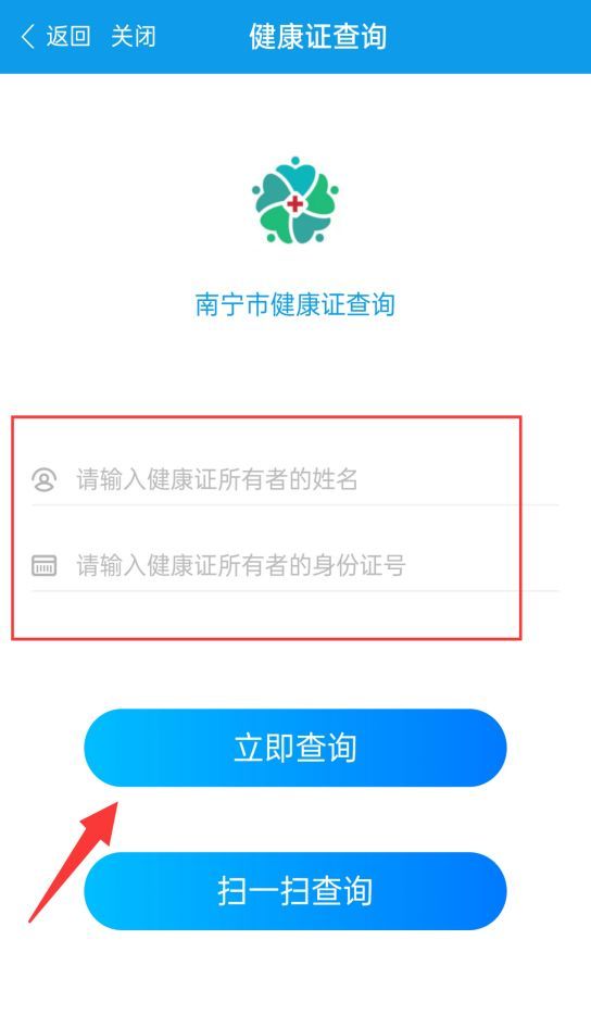 下载并打开“爱南宁”APP→点击“更多”→点击“健康证明查询”→输入个人信息→点击“立即查询”: