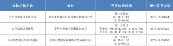 金华市各县(市、区)食品行业从业人员健康证明办理点信息