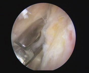 就是瘢痕,所谓瘢痕,不仅是皮肤表面会在创伤后生长,关节内也会有。图中就是粘连松解手术中关节内取出的瘢痕标本。白色,质地坚韧。