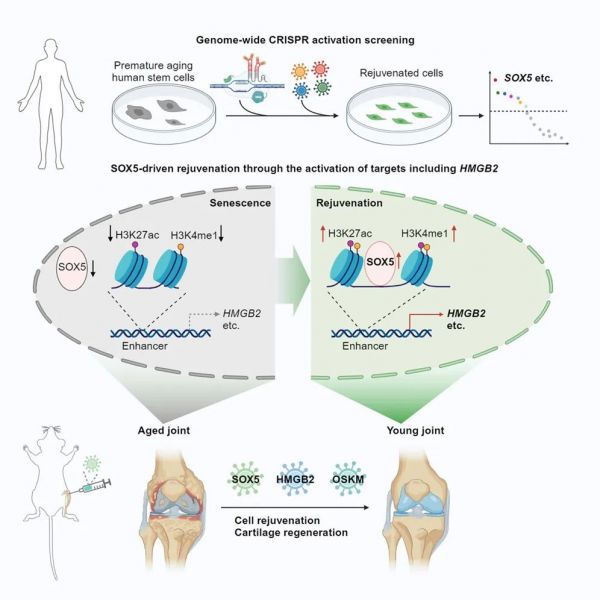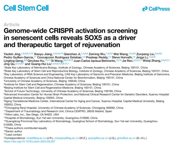Cell Stem Cell 期刊发表了题为:Genome-wide CRISPR activation screening in senescent cells reveals SOX5 as a driver and therapeutic target of rejuvenation 的研究论文。该研究首次通过基于