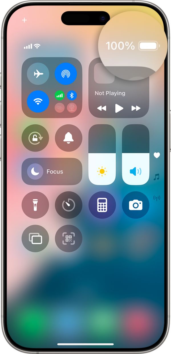 * 如果没有显示电池百分比,请前往“设置”>“电池”,然后打开“电池百分比”。