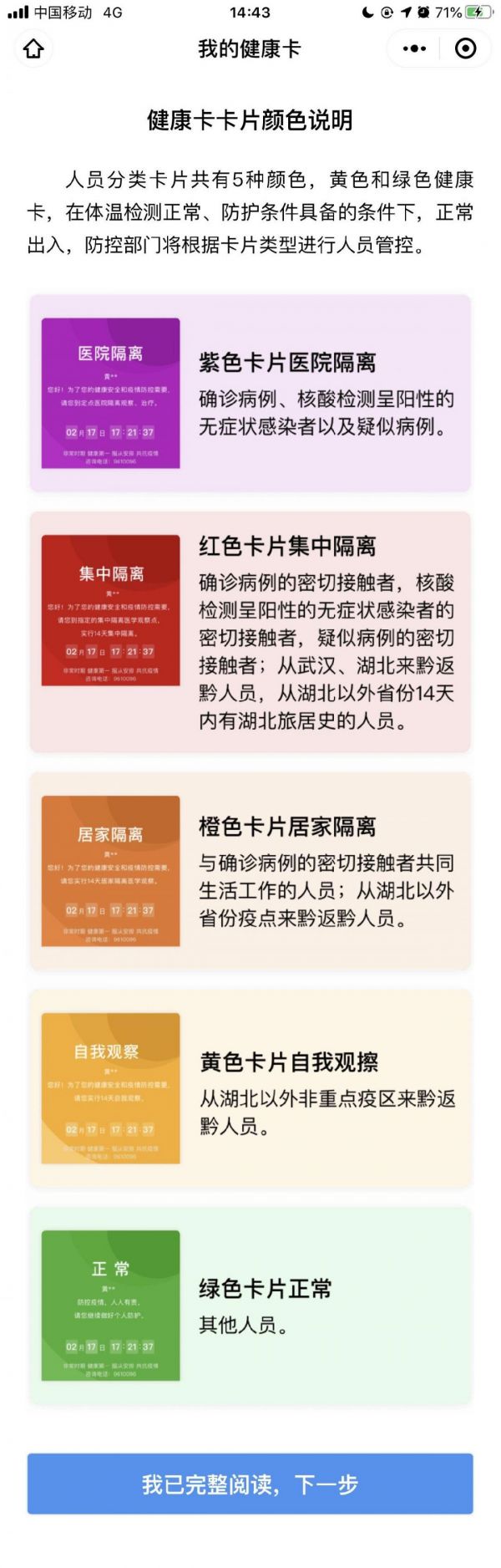 贵州健康码小程序上的健康卡只适用于贵州省境内。