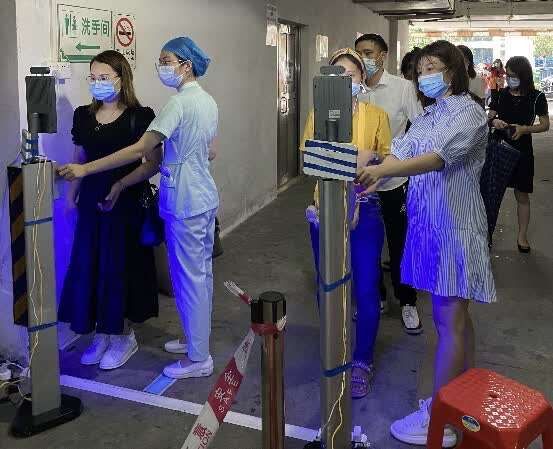 6月8日凌晨,广州白云机场在T1航站楼和地铁机场站入口,紧急安装5G健康码智能通行系统,当天早上10套设备成功投入使用。
