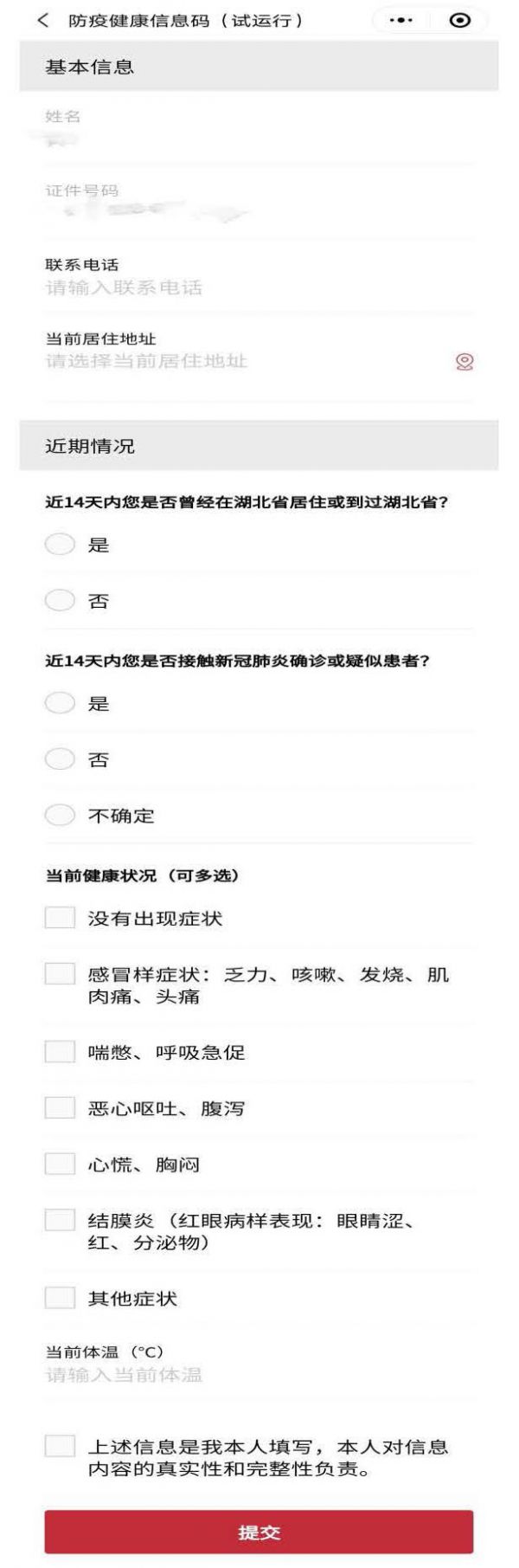 个人健康码申请