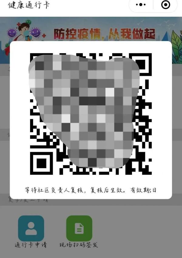 ④成功提交后,系统将给出一个黑白健康码(如下图)这个时候等待签发人,审核签发即可。