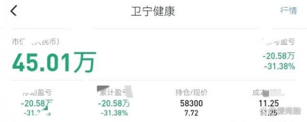 我是陈华华,今年39岁,来自广西一个较为偏远的村庄。多年来在外经商赚得一些钱,原本打算今年年底在桂林购置一套住房。不过,运气不佳,我大量投资了卫宁健康股票,结果遭遇重大损失,短短八个交易日内,亏损超过20万。我简直想放弃生命,没想到市值超过200亿的股票也会如小市值股票般充满风险。今天我在这里与大家分享我的经历,希望提醒投资者不要把所有资金都投入到一只股票上,一旦遇到大雷,后果无法承受,这是我血的教训。