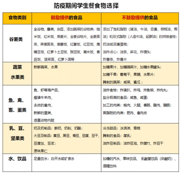 防疫时期,在满足中小学生生长发育所需能量和营养素需要的基础上,尽量做到食物多样,适时调配,注重营养与口味相结合,同类食物可以互换。也要根据当地的食物品种、季节特点和饮食习惯等具体情况,结合中小学生营养健康状况和身体活动水平配餐,预防营养缺乏。