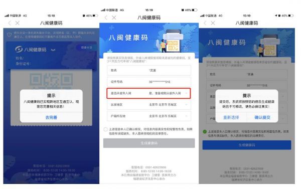 省外入闽人员申领健康码