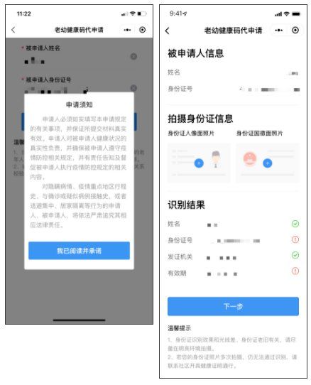 (2)申请人和被申请人若通过户籍关系核验,可进行快速申请。如未通过快速校验,请按系统提示上传被申请人身份证、户口本等证明材料后自动完成识别校验。校验通过后需拍摄被申请人照片并完成健康上报。