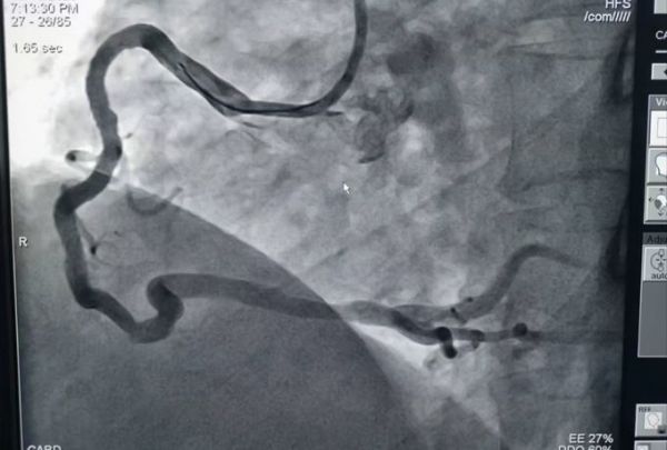 为准确判断病情,建议立即行冠脉造影检查。进一步的冠脉造影结果证实了医生的判断,而检查结果也着实让人揪心:患者三支心脏主血管均存在严重弥漫性钙化病变,且严重狭窄,尤其是其中两根较为严重,最重狭窄为次全闭塞。