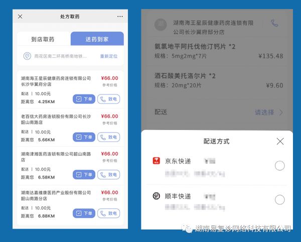 患者可凭“未取药”处方点击“凭方购药”服务,选择任意一家湖南省处方流转与监管平台联网药店购买药品,凭“取药码”即可到店取药或送药到家。