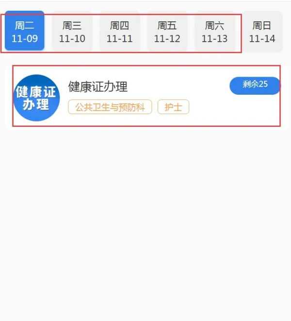第一步:扫描上方二维码,进入微信公众号,选择预约挂号点击健康证办理