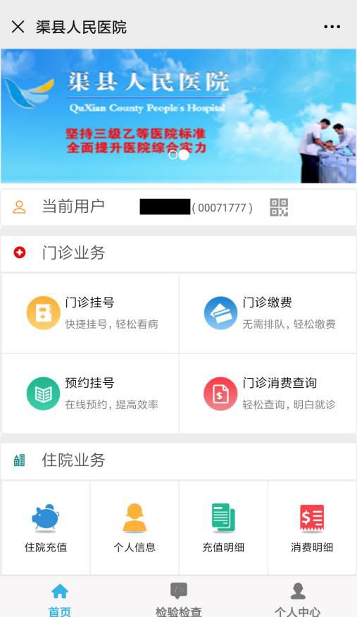 使用微信长按识别二维码关注公众号“渠县人民医院”