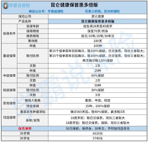 总结:昆仑健康是一家值得信赖的保险公司,旗下卖的比较好的这款健康保普惠多倍版投保条件宽松、赔付比例高、实用保障多,是一款优质的重疾险产品,性价比非常高。