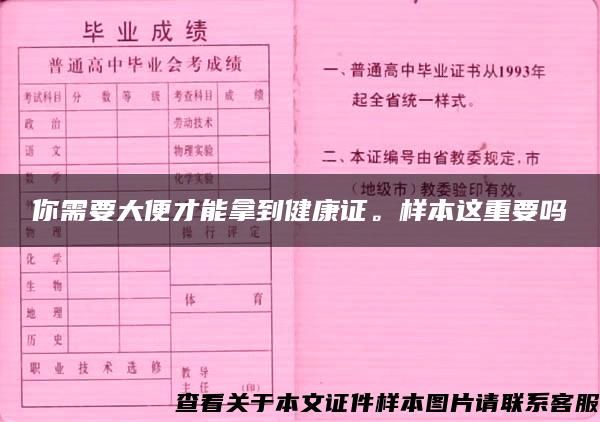 毕业证样本网创作《你需要大便才能拿到健康证。样本这重要吗》发布不易,请尊重! 转转请注明出处:https://www.czyyhgd.com/649475.html
