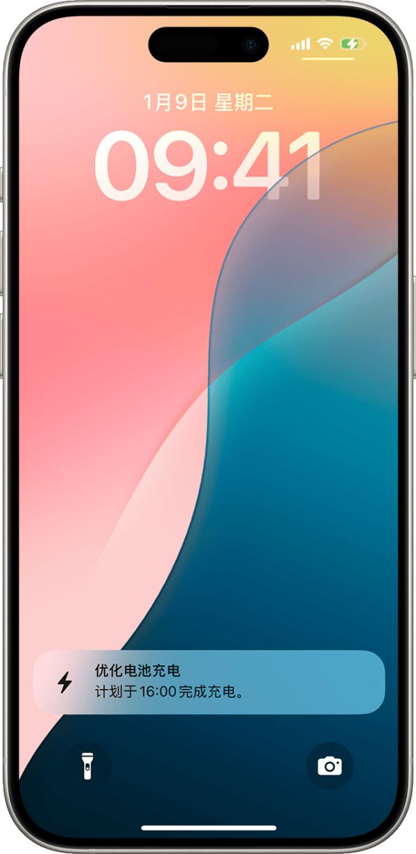 如果“优化电池充电”已激活,则锁定屏幕上会显示一条通知,指出 iPhone 将在什么时候充满电。如果你需要尽快为 iPhone 充满电,请按住这条通知,然后轻点“立即充电”。
