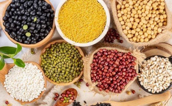 大豆蛋白质含有较多的赖氨酸,而谷类蛋白质中赖氨酸含量较低,豆类与谷类食物搭配食用,可发挥蛋白质互补作用,显著提高蛋白质的营养价值。例如北方地区居民常吃的豆面条,由小麦粉和大豆粉制成;杂合面窝窝头,由玉米、小米粉、豆粉等混合制作,其蛋白质的营养价值堪比肉类。比如可以用大豆粉白面玉米面做的豆面条、豆面窝窝头。