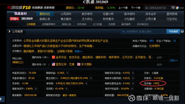 凯盛新材,氯化亚砜全球龙头, 创业板上市发行价5.17元,市值21.77亿,持股市值9.69亿; 现上市疯炒中,最高价36.86, 高点杀1半 18.43元,市值77.59亿,持股市值34.54亿