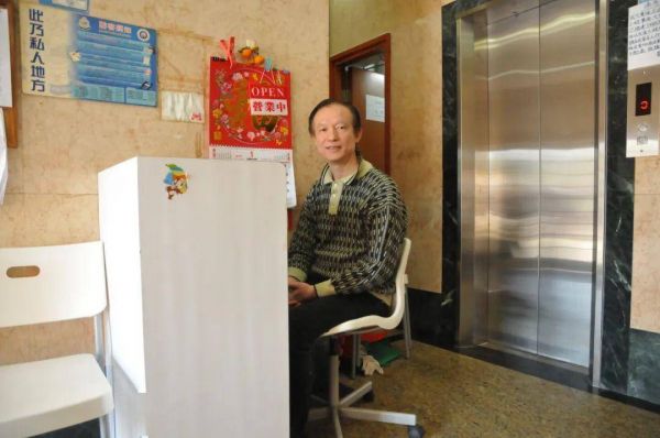 当时我有一门课程的作业是找一个陌生人,拍摄TA在工作、家里、做自己喜欢的事时的三张照片。于是我邀请孙先生当模特。我才知道他有个很赚钱很多的妻子,有个大学刚毕业的女儿,还有一个在保险行业工作的女婿,他中午会趁着换班间隙穿过一条马路回家煮个泡面吃,他的兴趣爱好是夜跑,他偶尔会去吃肯德基的红豆冰,然后观察里面的老年服务员。