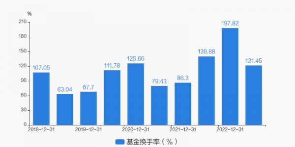 基金最新换手率为121.45%,上一期换手率为197.82%。历史换手率最高为2022年12月31日,高达197.82%。