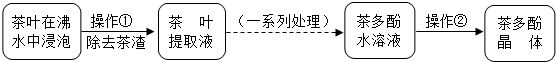 (2)过滤除去废渣,再蒸发结晶得到固体茶多酚.