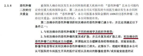 说实话这个恶性肿瘤二次赔付条件比较苛刻,比其他公司的二次恶性肿瘤赔付条款限制较多。