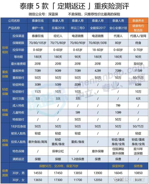 我对这些“有病治病,没病返本”的重疾险,也进行了汇总,再加入一款健康有约、,一起来看一下。