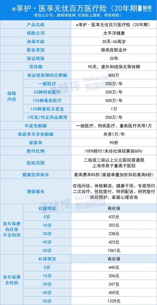 今年,大保险公司太平洋再次出击,上线了全新升级的保证续保20年医疗险,它就是