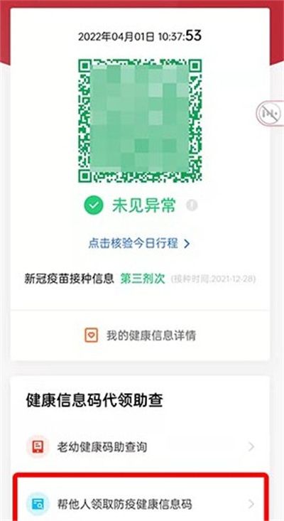 进入领取后的页面之后我们可以看到下面有一个帮他人领取防疫健康信息码的功能,点击然后填写对应的信息就可以了。