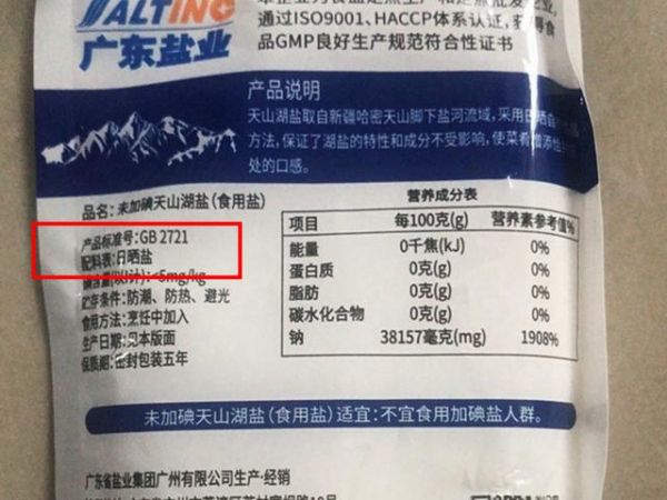 在购买食用盐时,我们需要注意包装袋上的生产标准编号。没有生产标准编号的盐可能是假冒伪劣产品,我们应避免购买。