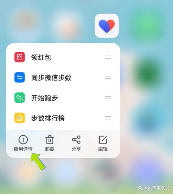 1、选中并长按“健康”自带应用,点击“应用详情”选项。