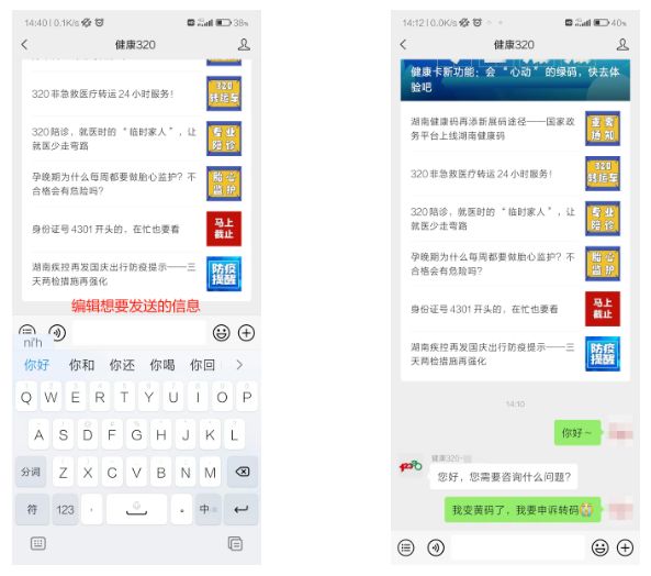 1.关注“健康320”微信公众号咨询申诉(仅处理湖南省黄码人员申诉);