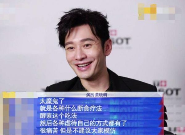 黄晓明在接受记者采访时表示,体重虽然掉下来了,但自己的身体也出现了许多问题,不仅肠胃变得脆弱,而且有时还会心悸,而且自己因为长时间控制饮食不吃碳水,导致心情烦闷、脾气很暴躁。