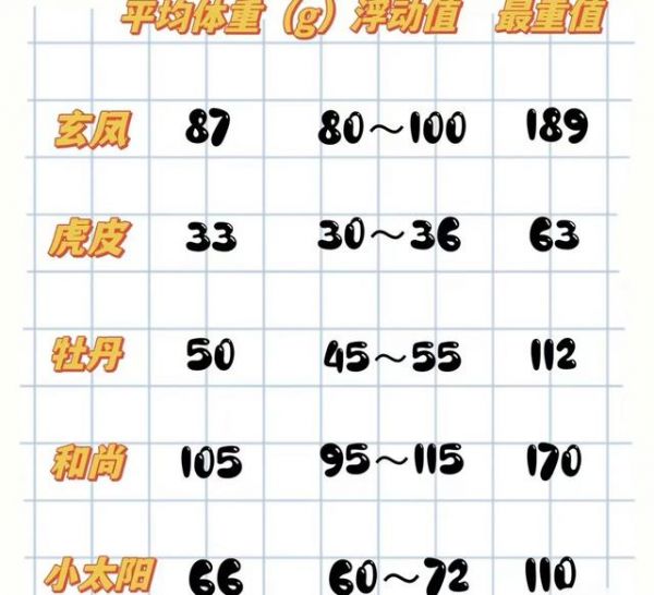 鹦鹉的体重一直是鸟友们比较关心的问题,跟人类一样,鹦鹉的体重也有一个正常的范围值,如下图所示: